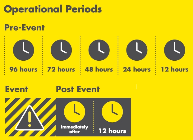With a Disaster Staffing Plan in place, your organization will know what actions to take 96 hours ahead of a predicted disaster, such as a storm, and immediately after a sudden disaster, for example an earthquake. By establishing these operational periods, organizations can be prepared to respond to both predicted and sudden disasters.